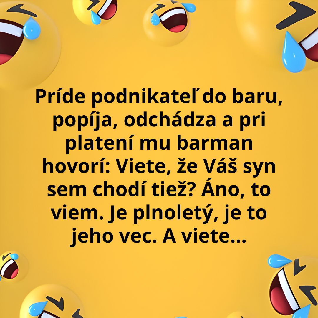 Barman rýpe do podnikateľa a spomína jeho syna (Vtip)