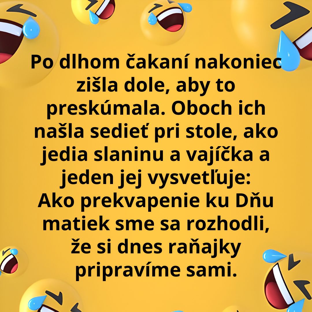Vtip o tom, ako sa deti rozhodli na Deň matiek uľahčiť svojej mame ráno.