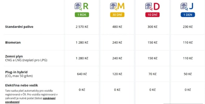 Aj naďalej platí, že elektromobily a vozidlá na vodík môžu české diaľnice využívať bezplatne. Pri autách registrovaných v Česku je oslobodenie automatické, zatiaľ čo pri zahraničných vozidlách je potrebné podať oznámenie o oslobodení. Plug-in hybridy majú nárok na zľavu a zaplatia len štvrtinu z bežnej ceny, vozidlá na biometán alebo zemný plyn platia polovicu.