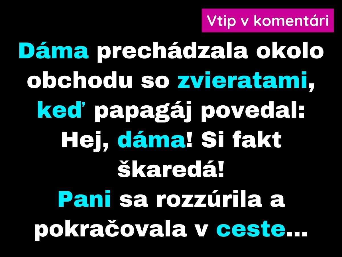 Vtip o tom, ako sa papagáj zo zverimexu prihovára okoloidúcej dáme.