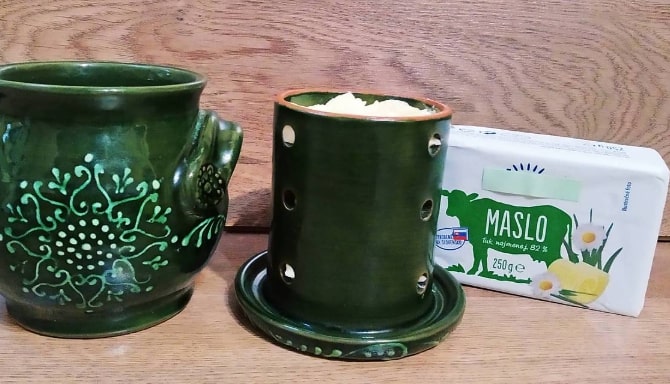 Vo Francúzsku sa rozšíril trochu iný, no veľmi praktický spôsob, ako maslo uchovávať – pomocou vodnej maselničky. Táto nádoba býva zvyčajne keramická alebo sklenená a skladá sa z dvoch častí.
