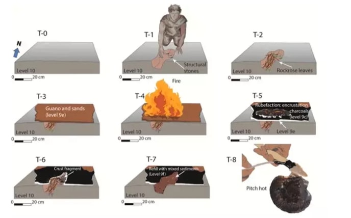 Už v roku 2024 výskumníci v Gorhamovej jaskyni objavili približne 60-tisíc rokov starú pec na výrobu lepidla. Sedimentová vrstva, stará 67- až 60-tisíc rokov, bola podľa odborníkov „jednoznačne vytvorená ľudskou rukou“. Predpokladá sa, že ohnisko slúžilo na výrobu brezového dechtu – lepkavej hmoty, ktorú pravekí ľudia používali na pripevňovanie rukovätí k nástrojom či zbraniam.