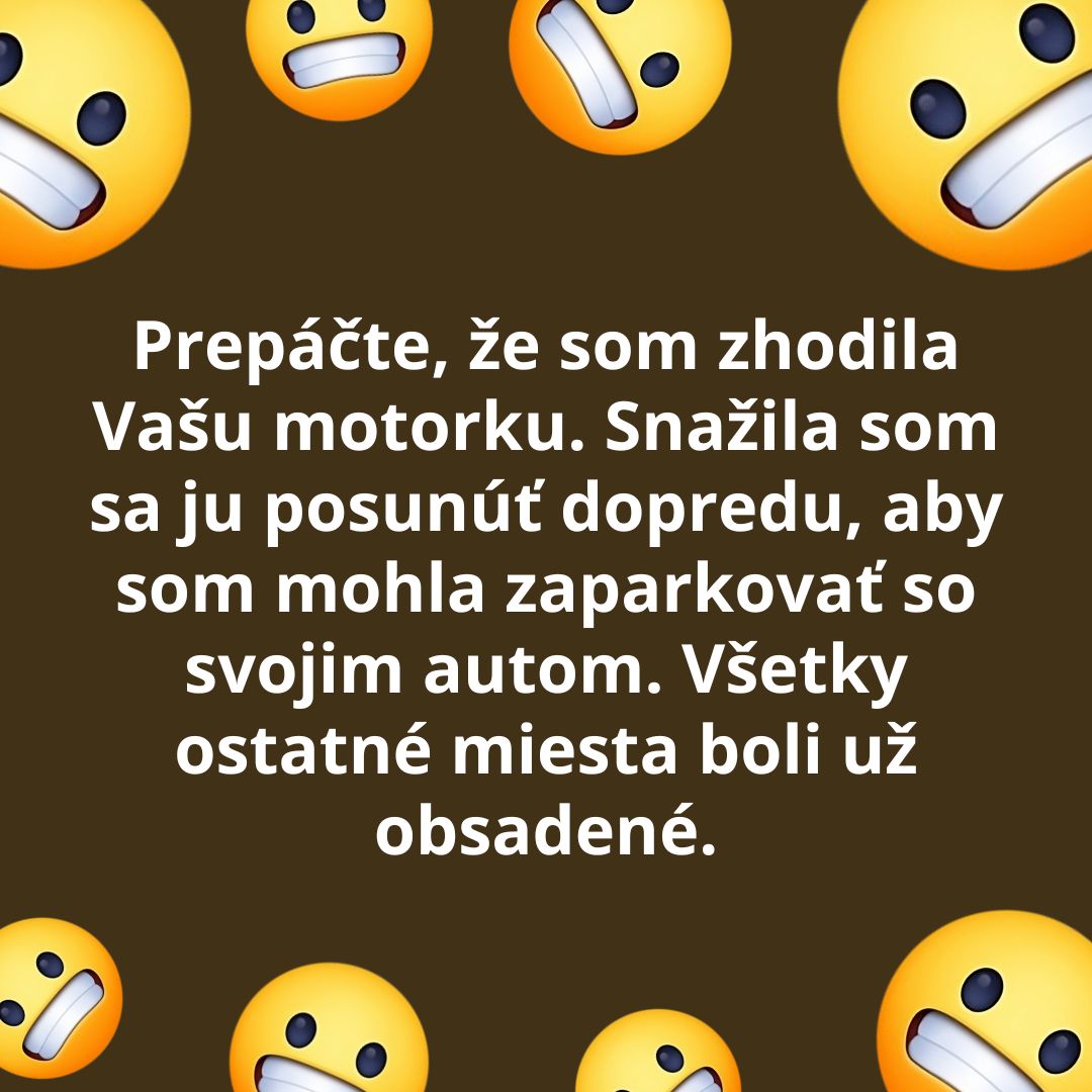 Príbeh zo života motorkára, ktorému sa pri parkovaní nedostalo príliš veľa úcty a rešpektu.