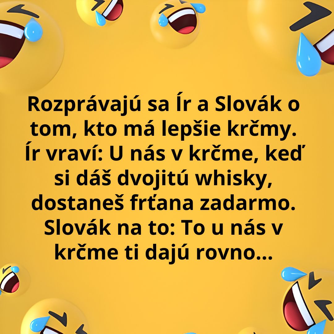 Vtip o tom, ako Ír a Slovák porovnávajú krčmy v svojej domovine.