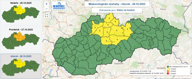 Najvýraznejšia snehová nádielka sa predpokladá v Západných a Nízkych Tatrách, kde by do utorňajšieho rána (28. 10.) mohlo napadnúť 15 až 25 centimetrov nového snehu. Výraznejšie sneženie zasiahne aj ďalšie horské oblasti severu a severozápadu Slovenska – najmä svahy orientované na severozápad, kde môže pribudnúť viac ako 20 centimetrov snehu.